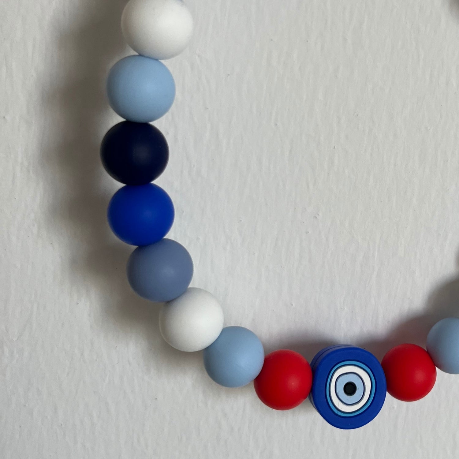 - Perlas de silicona flexible y no tóxica, seguras para jugar, morder y brillar todo el día.