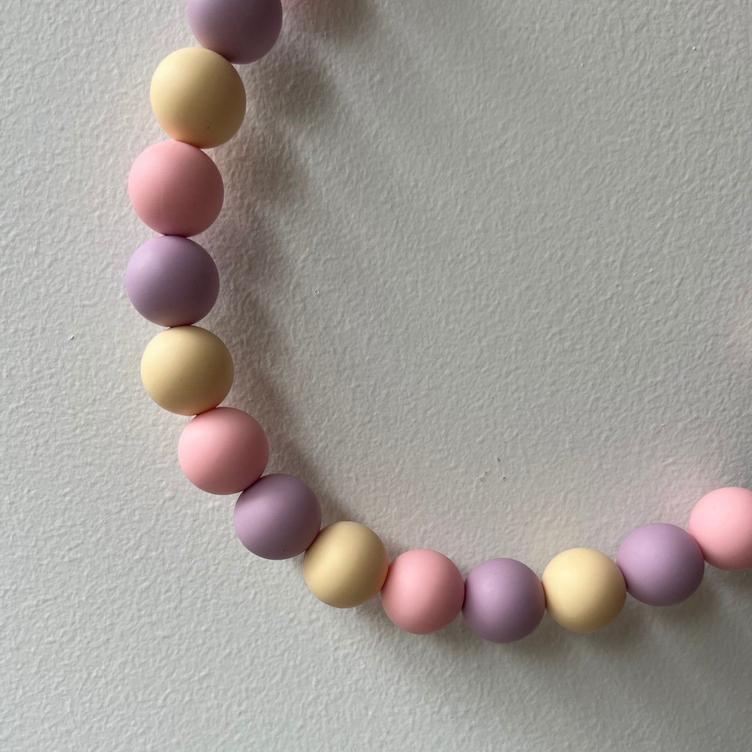 - Perlas de silicona flexible y no tóxica, seguras para jugar, morder y brillar todo el día.