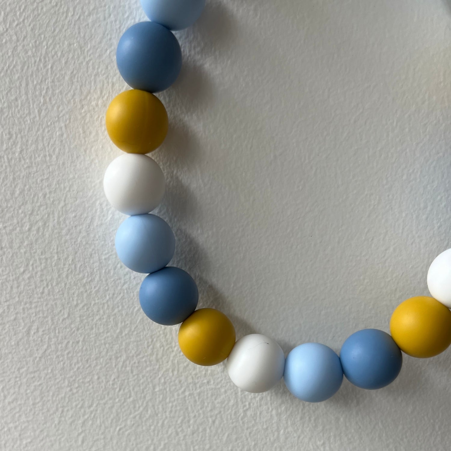 - Perlas de silicona flexible y no tóxica, seguras para jugar, morder y brillar todo el día.