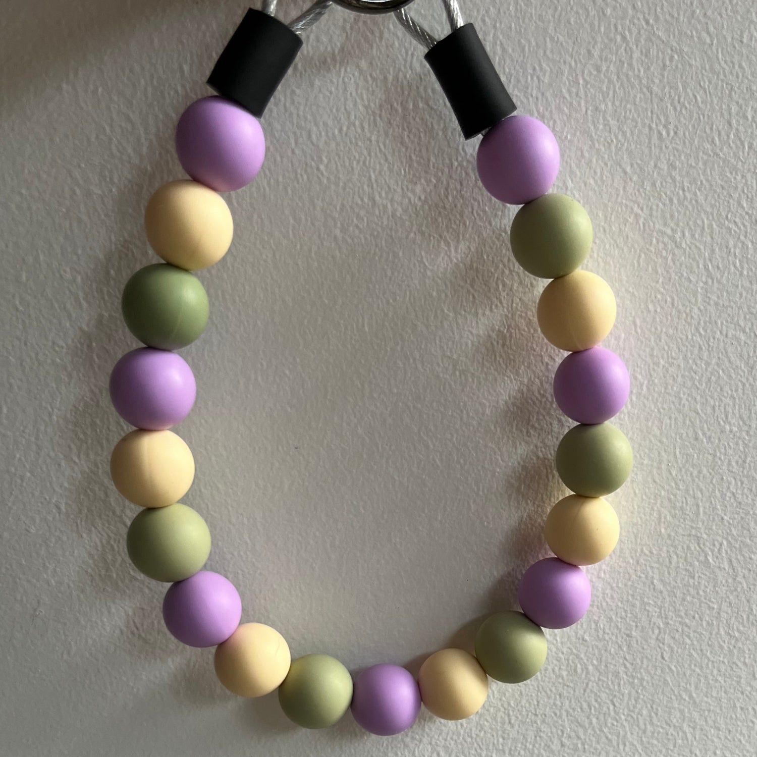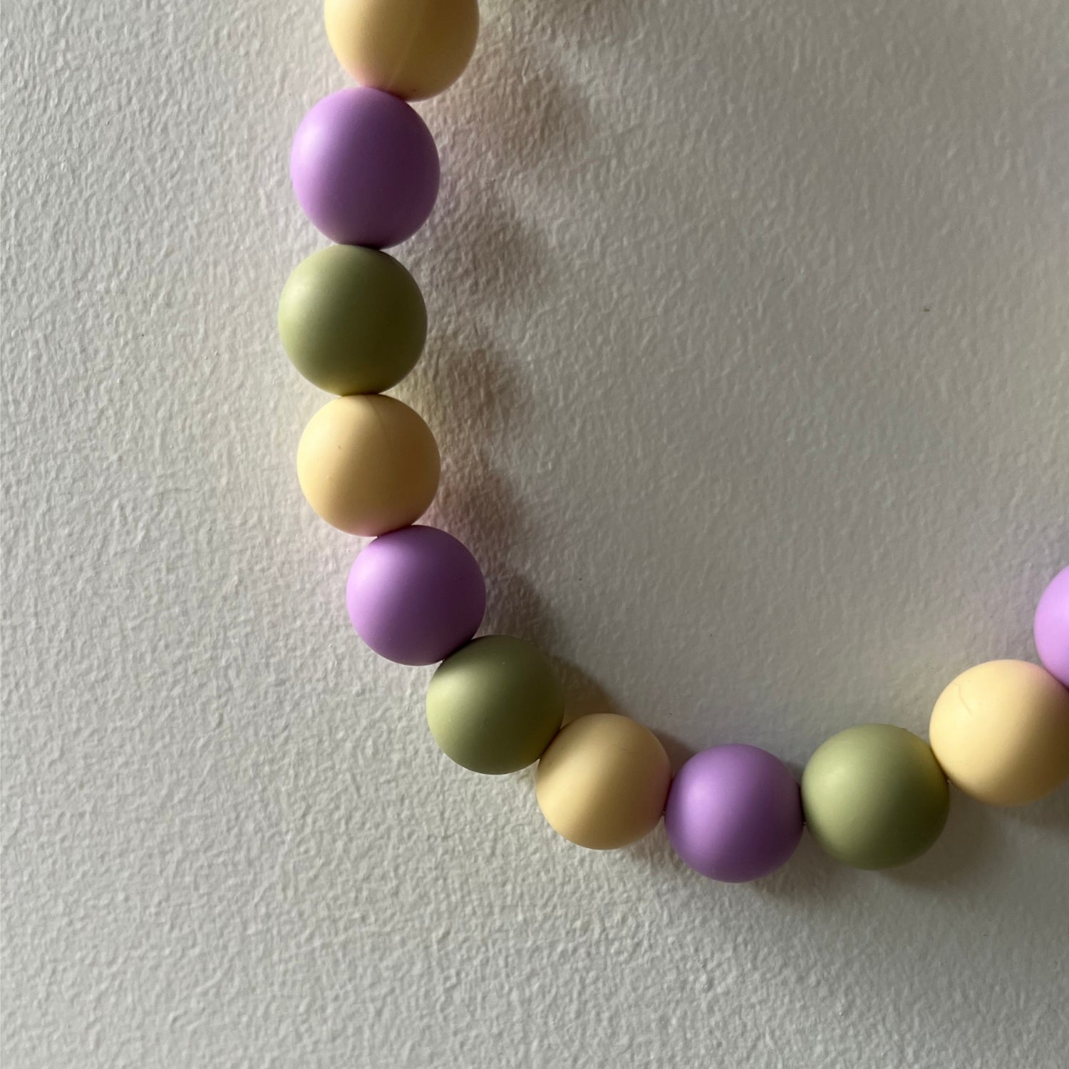 - Perlas de silicona flexible y no tóxica, seguras para jugar, morder y brillar todo el día.