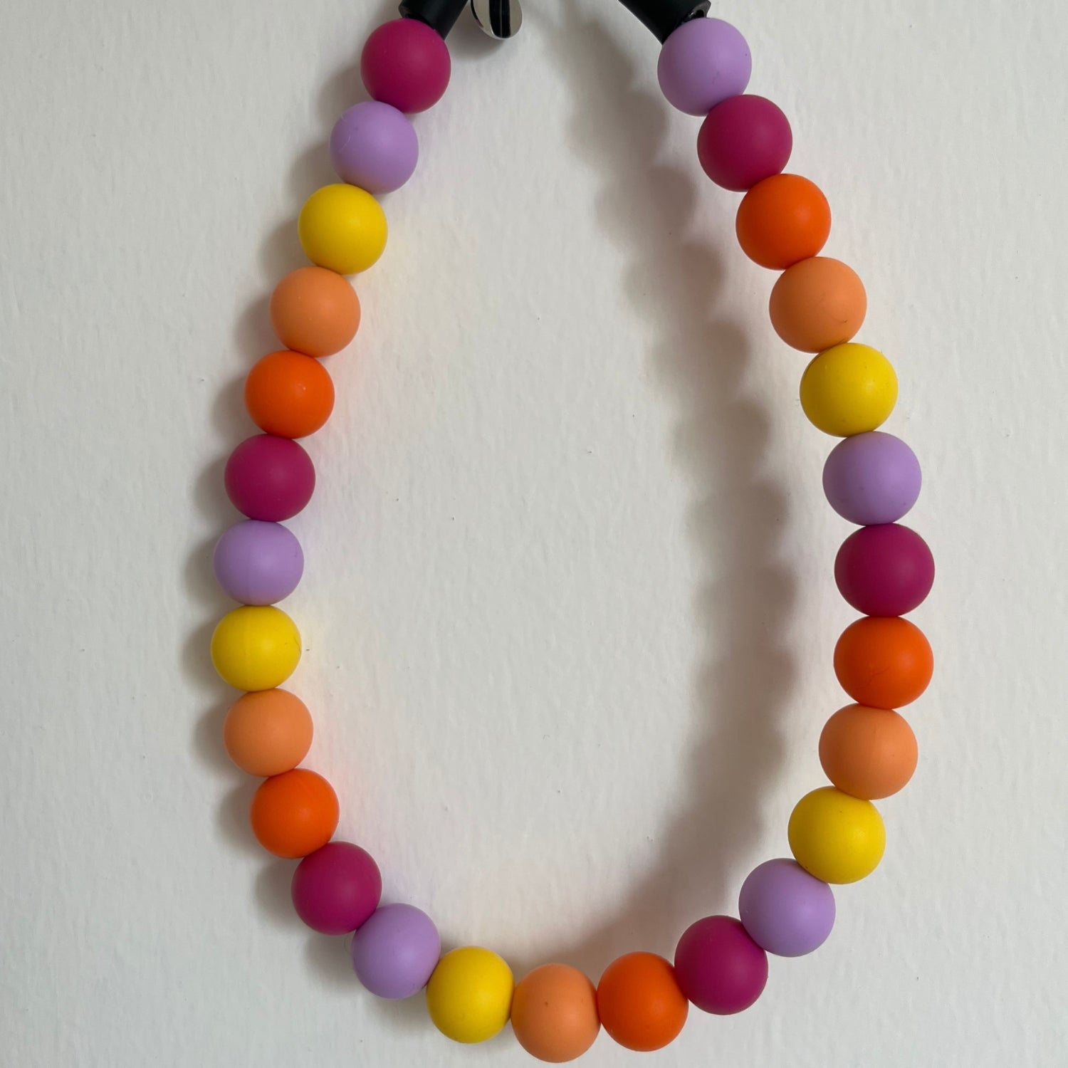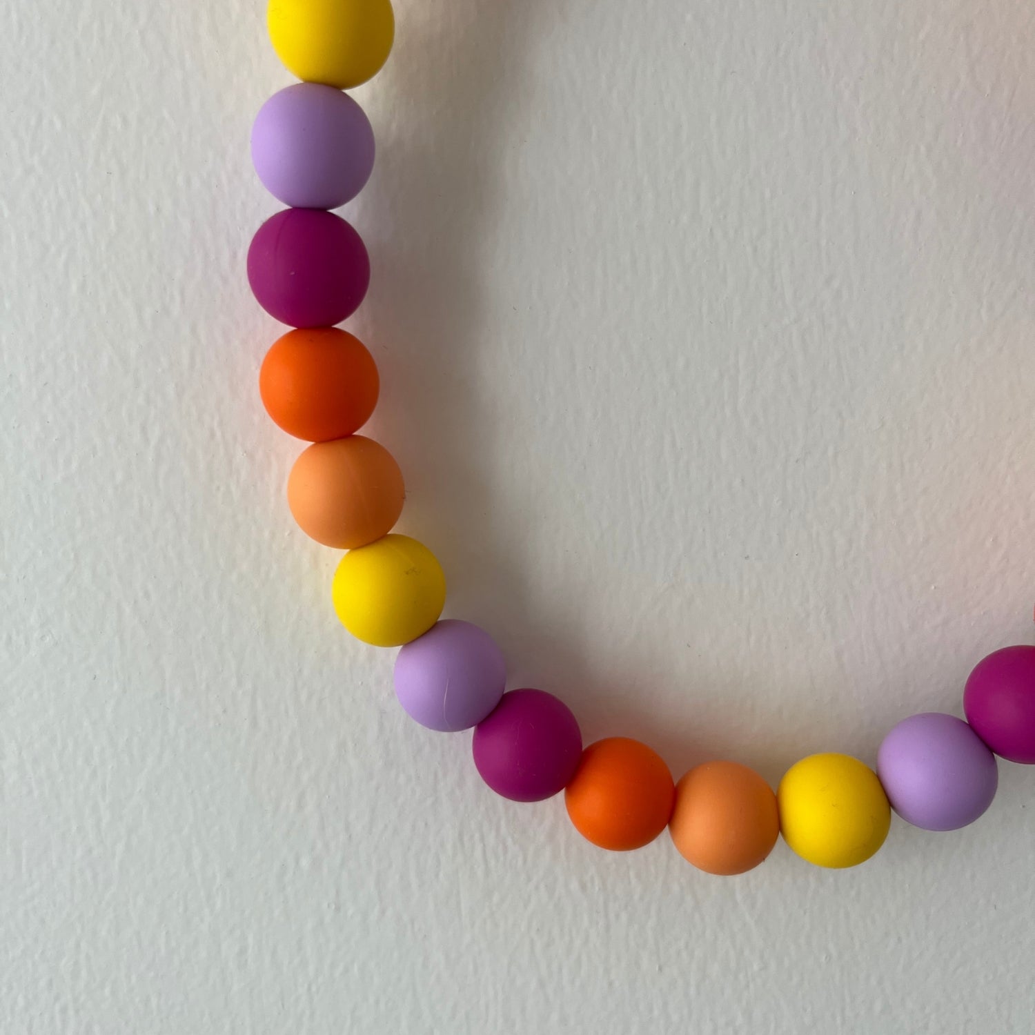 - Perlas de silicona flexible y no tóxica, seguras para jugar, morder y brillar todo el día.