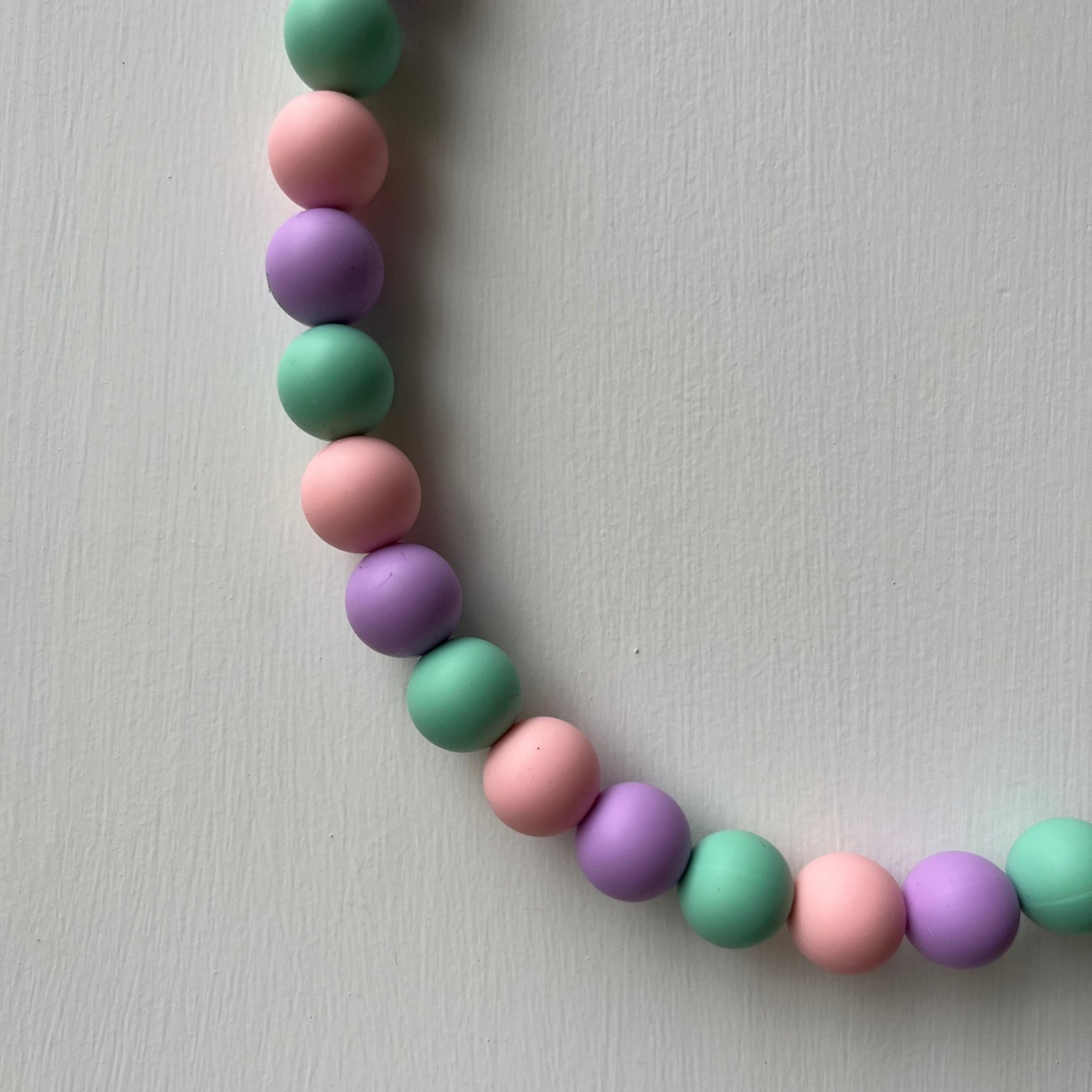 - Perlas de silicona flexible y no tóxica, seguras para jugar, morder y brillar todo el día.