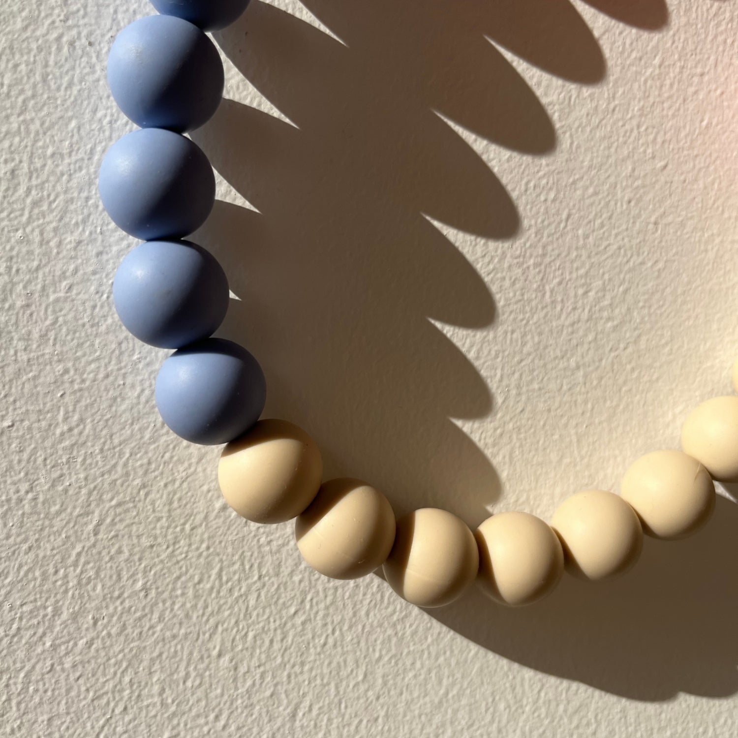 - Perlas de silicona flexible y no tóxica, seguras para jugar, morder y brillar todo el día.