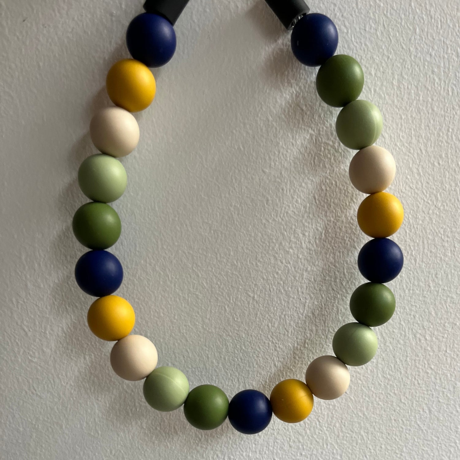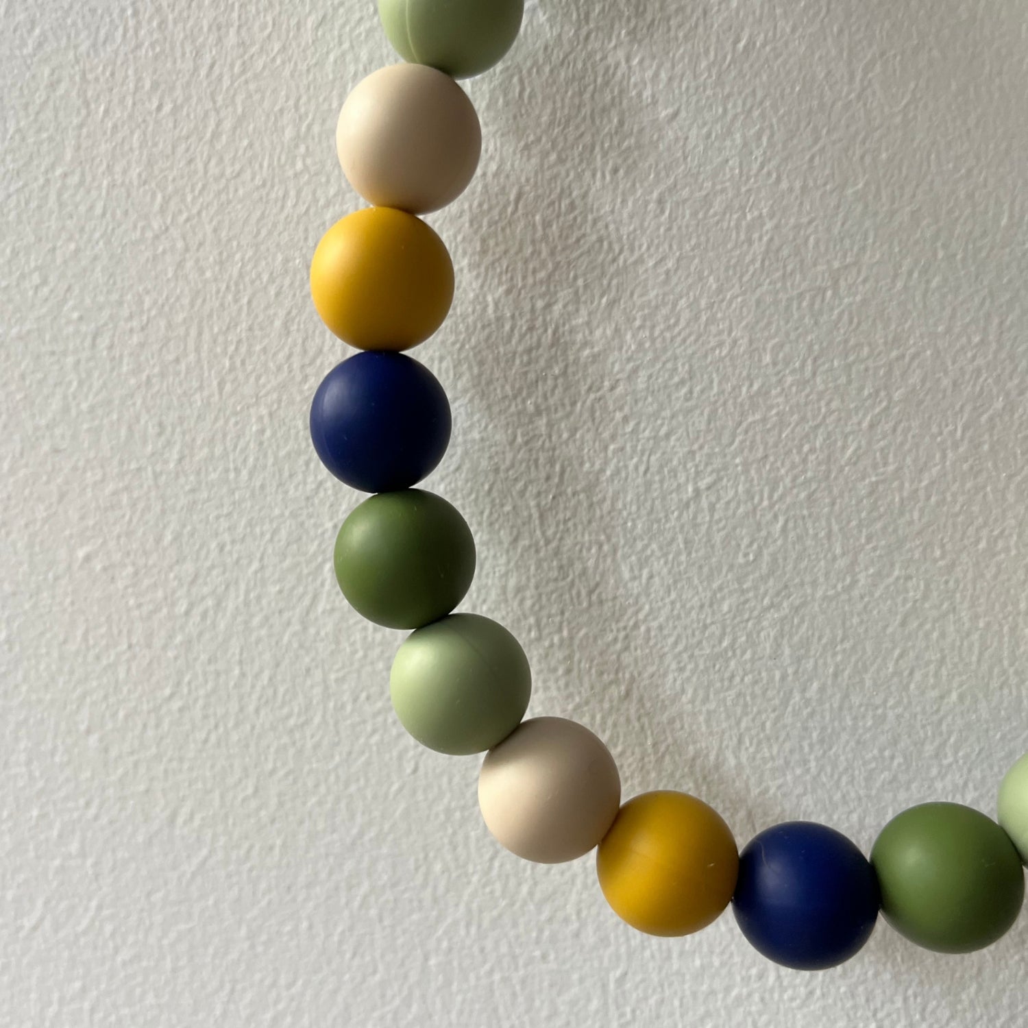 - Perlas de silicona flexible y no tóxica, seguras para jugar, morder y brillar todo el día.