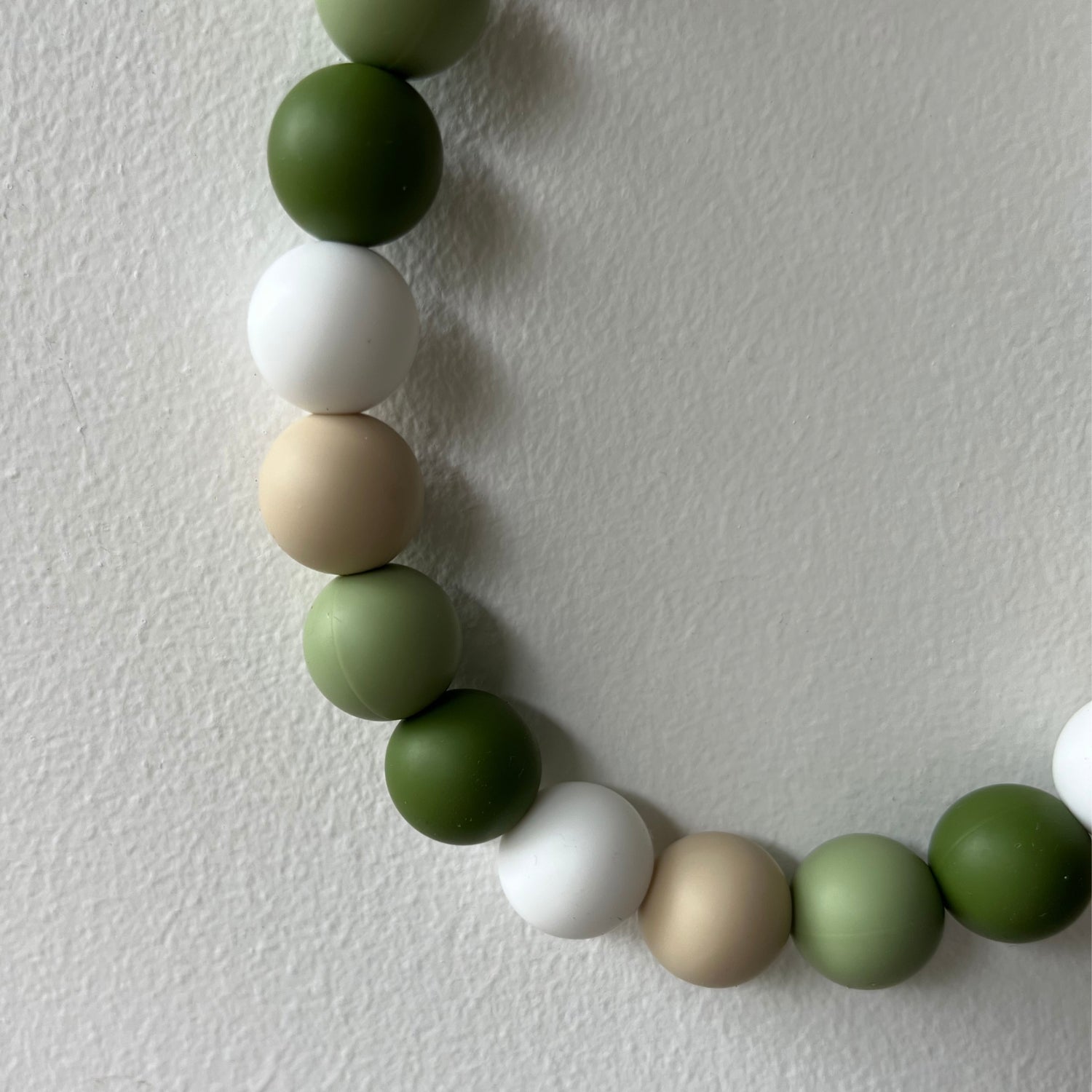 - Perlas de silicona flexible y no tóxica, seguras para jugar, morder y brillar todo el día.