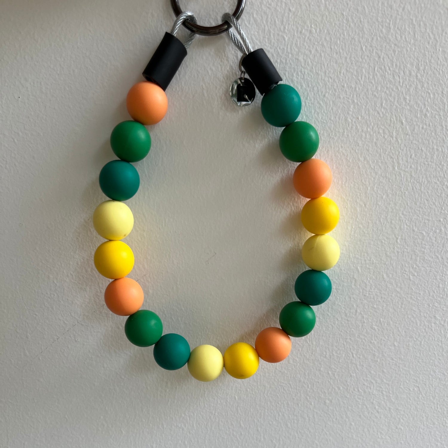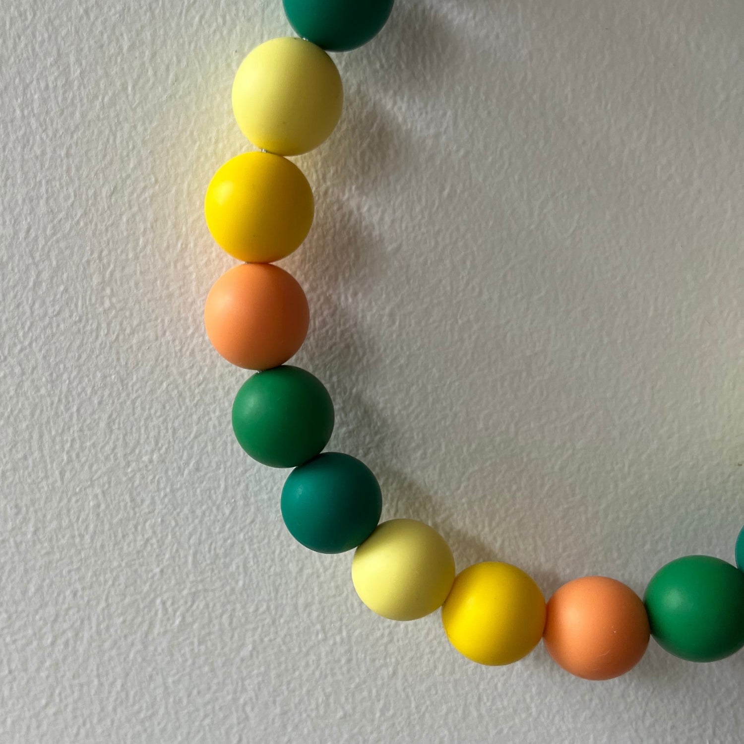 - Perlas de silicona flexible y no tóxica, seguras para jugar, morder y brillar todo el día.