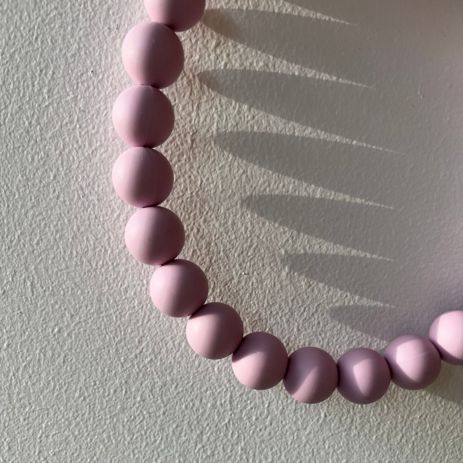 - Perlas de silicona flexible y no tóxica, seguras para jugar, morder y brillar todo el día.