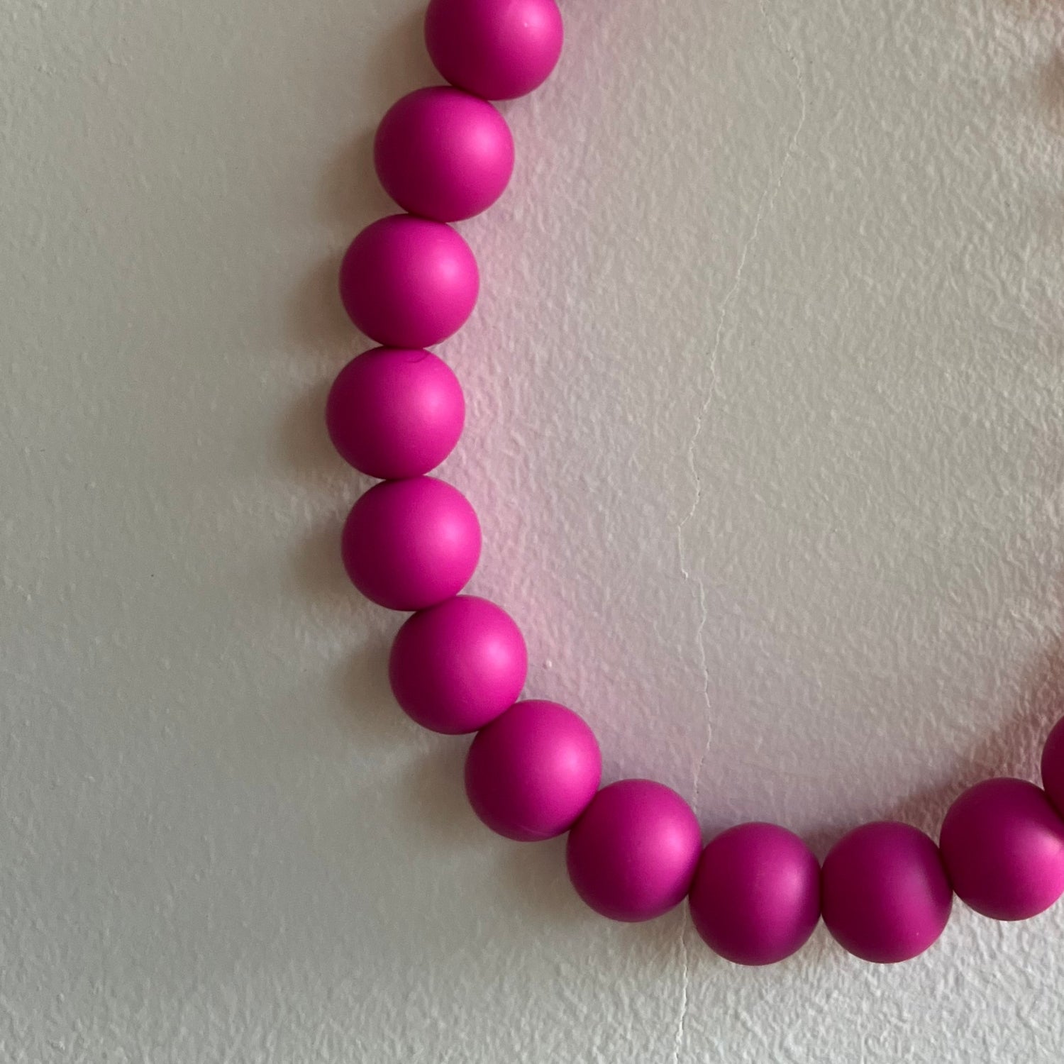 - Perlas de silicona flexible y no tóxica, seguras para jugar, morder y brillar todo el día.