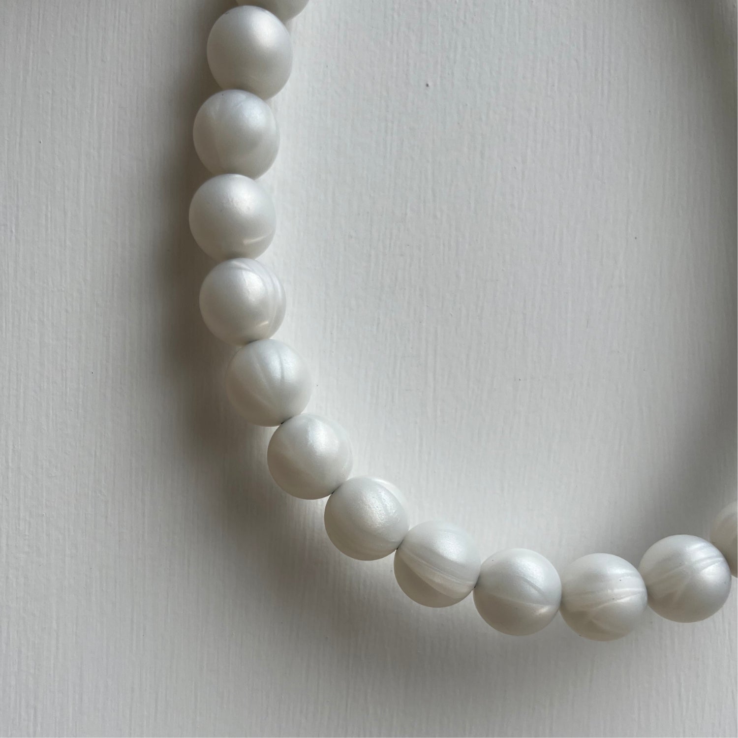 - Perlas de silicona flexible y no tóxica, seguras para jugar, morder y brillar todo el día.